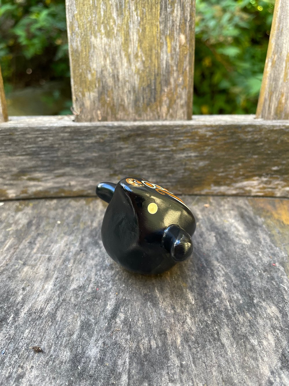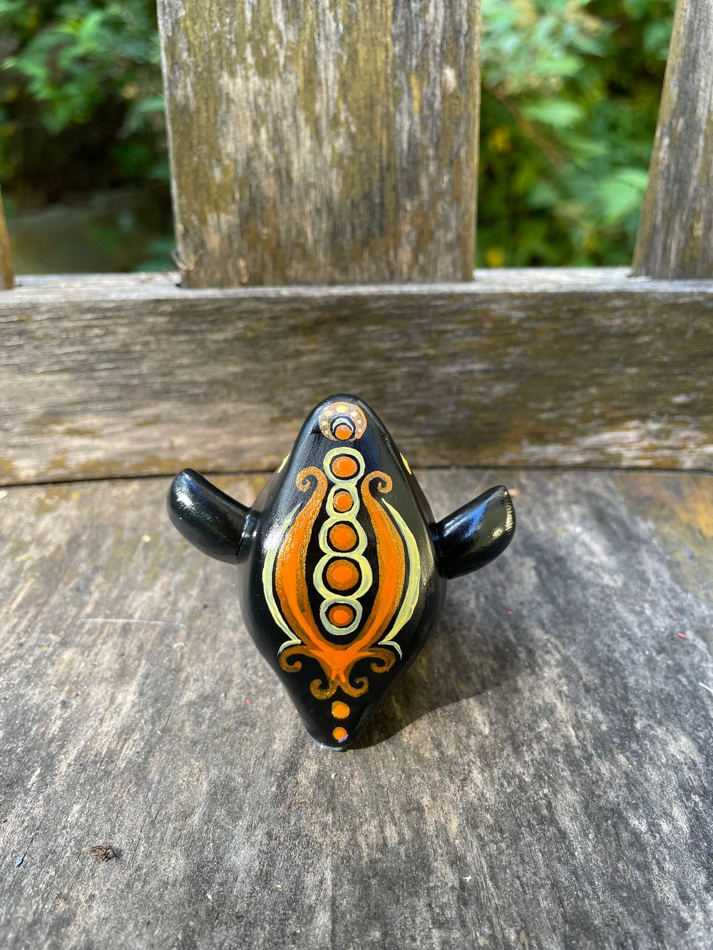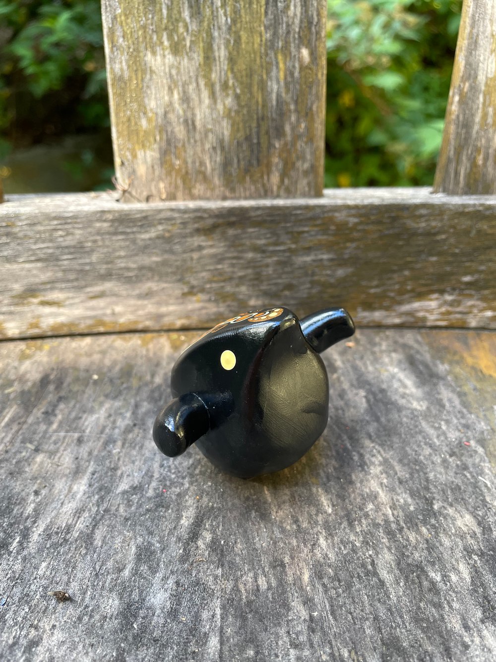 Each Peekling is made from polymer clay that is placed over a tin foil armature. They are hand painted with acrylic paint and varnished with polycrylic. While exact size varies between each Peekling, they are approximately 1.5" tall, 2" wide and 2"across.