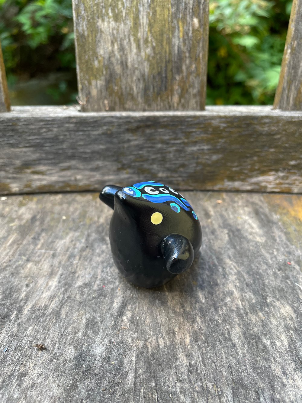 Each Peekling is made from polymer clay that is placed over a tin foil armature. They are hand painted with acrylic paint and varnished with polycrylic. While exact size varies between each Peekling, they are approximately 1.5" tall, 2" wide and 2"across.